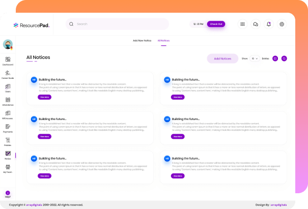 "Efficient Communication, Unparalleled Results: Our notification system keeps your workforce informed and engaged like never before. With real-time updates on important announcements, upcoming events, and personalized alerts, HRM Solutions ensures seamless communication across your organization. Say goodbye to missed deadlines and welcome a connected, motivated workforce that drives productivity to new heights.